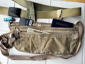 So, worst case if both daypak & rolling luggage were stolen I would still have $1000 US and my passport under my trousers. If only one piece of luggage was stolen, I would have $6000.