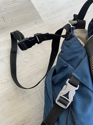 a. adjustable chest strap & strap lock (right side of strap seen on bottom left side of closest shoulder strap in image.